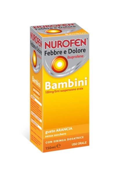 PosologiaPosologia La dose giornaliera è strutturata in base al peso ed all’età del paziente. Gli effetti indesiderati possono essere minimizzati con l’uso della dose minima efficace per la durata di trattamento più breve possibile necessaria per controllare i sintomi (vedere paragrafo 4.4). Nei bambini di età compresa tra 3 e 6 mesi limitare la somministrazione a quelli di peso superiore ai 5,6 kg. Modo di somministrazione La somministrazione orale a lattanti e bambini di età compresa fra 3 mesi e 12 anni dovrebbe avvenire mediante siringa dosatrice o cucchiaino dosatore forniti con il prodotto. I pazienti che soffrono di problemi di stomaco possono assumere il medicinale durante i pasti. La dose giornaliera di 20–30 mg/kg di peso corporeo, suddivisa 3 volte al giorno ad intervalli di 6–8 ore, può essere somministrata sulla base dello schema che segue. (non superare le dosi consigliate) Nurofen Febbre e Dolore Bambini 100mg/5ml Sospensione Orale La scala graduata presente sul corpo della siringa riporta in evidenza le tacche per i diversi dosaggi; in particolare la tacca da 2,5 ml corrispondente a 50 mg di ibuprofene e la tacca da 5 ml corrispondente a 100 mg di ibuprofene. Il cucchiaino dosatore riporta due tacche per due diversi dosaggi: la tacca da 2,5 ml corrispondente a 50 mg di ibuprofene e la tacca da 5 ml corrispondente a 100 mg di ibuprofene.