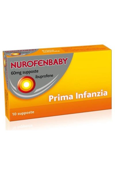 PosologiaUso rettale Solo per un breve periodo di trattamento. Nurofenbaby deve essere somministrato a bambini di più di 3 mesi di età e un peso corporeo di almeno 6,0 kg. La singola dose massima non deve superare i 10 mg di ibuprofene per kg di peso corporeo. L’intervallo tra una somministrazione e la successiva non deve essere inferiore alle 6 ore. La dose massima giornaliera di ibuprofene è pari a 20–30 mg/kg di peso corporeo, suddivisa in 3 o 4 somministrazioni. Ciò significa: bambini di peso corporeo tra 6,0 e 8,0 kg (tra i 3 e i 9 mesi): 1 supposta all’inizio del trattamento, da ripetere se necessario, dopo almeno 6–8 ore. Non devono essere somministrate più di 3 supposte nell’arco delle 24 ore. Bambini di peso corporeo tra 8,0 e 12,5 kg (tra i 9 mesi e i 2 anni): 1 supposta all’inizio del trattamento, da ripetere se necessario, solo dopo 6 ore. Non devono essere somministrate più di 4 supposte nell’arco delle 24 ore. Le supposte da 60 mg di Nurofenbaby non sono adatte per bambini che pesano meno di 6.0 kg (3 mesi di età) (vedere paragrafo 4.3). La somministrazione nei pazienti con insufficienza renale o epatica deve avvenire dopo aver consultato il medico. Nei bambini di età compresa tra 3 e 5 mesi deve essere consultato il medico qualora i sintomi peggiorino oppure entro 24 ore se i sintomi persistono. Nel caso in cui questo medicinale sia richiesto per più di 3 giorni nei bambini a partire dai 6 mesi di età, o nel caso di peggioramento dei sintomi deve essere consultato il medico Gli effetti indesiderati possono essere minimizzati con l’uso della dose minima efficace per la durata di trattamento più breve possibile necessaria per controllare i sintomi (vedere paragrafo 4.4).