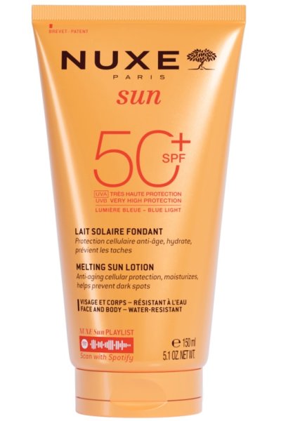 DescrizioneLozione solare SPF50+ a protezione molto alta con una texture fondente che protegge dai raggi UVA/UVB e dalla luce blu, idrata in profondità e previene le macchie scure.