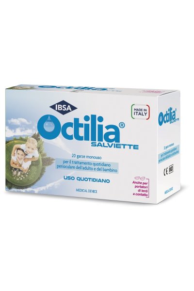 La salvietta Octilia è indicata per il trattamento topico delle zone delicate del viso (palpebre, ciglia, orecchie e naso) negli adulti e bambini per rimuovere polvere, polline e secrezioni. Il suo uso è indicato anche nella fase pre-post-operatoria per assicurare una delicata rimozione delle secrezioni. La salvietta è raccomandata per il trattamento quotidiano delle aree delicate del viso anche per portatori di lenti a contatto, individui che soffrono di occhi secchi o che hanno una predisposizione all'insorgenza di blefariti e blefarocongiuntiviti di vario tipo. Il dispositivo è una morbida salvietta per il trattamento topico quotidiano. Tutti i componenti sono utili per un’ottimale rimozione meccanica delle secrezioni, corpi estranei, polvere, eccetera, nel pieno rispetto della fisiologia della zona trattata.