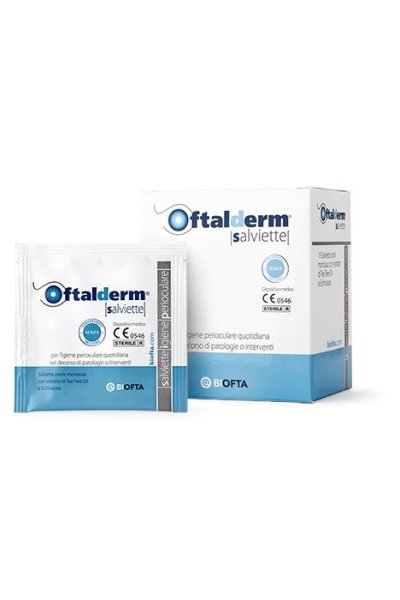OFTALDERM SALVIETTE è costituito da morbide salviette imbibite con una formulazione contenente anche ingredienti di origine naturale che rende confortevole il momento dell’applicazione e consente la rimozione di residui squamosi, di muco e di eventuali residui di farmaci o prodotti per il trucco. Gli estratti vegetali ad azione emolliente contenuti nella crema idratano e rinfrescano la zona perioculare apportando sollievo.