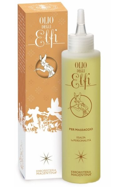 Miscela aromaterapica degli Elfi; Oli vegetali di: Mandorle, Sesamo, Vinaccioli e Soia; Iperico.