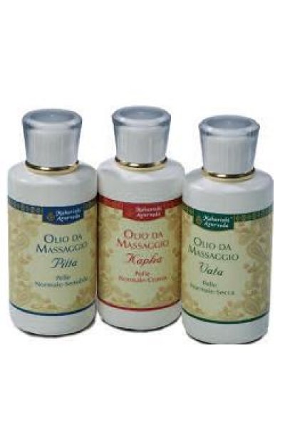 Gli oli erbalizzati Vata, Pitta e Kapha, scelti a seconda della propria fisiologia e della stagione, offrono effetti che equilibrano specifica costituzione.
