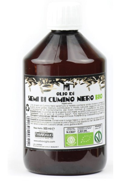 Ottimo riequilibrante del sistema immunitario e disintossicante a livello sia digestivo che intestinale. Contribuisce ad aiutare l'organismo nell'assorbimento degli elementi nutritivi, migliora la digestione e stimola le difese immunitarie. L'Olio di Semi di Cumino Nero contiene acido linoleico (omega 6). Questo acido grasso insaturo contribuisce al mantenimento dei livelli normali di colesterolo del sangue.