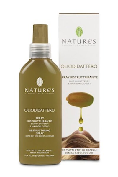 L’olio di Dattero, estratto a freddo per preservare l’elevato contenuto di flavonoidi e acidi grassi, nutre e rinforza la fibra capillare. Le proteine di Mandorle dolci ricche di Arginina, un amminoacido essenziale fondamentale per la costituzione del capello, migliorano l’elasticità e la tenuta dello styling. Contiene anche Vitamine, Tensioattivi Vegetali, Tè Bianco, Baobab, Avena.