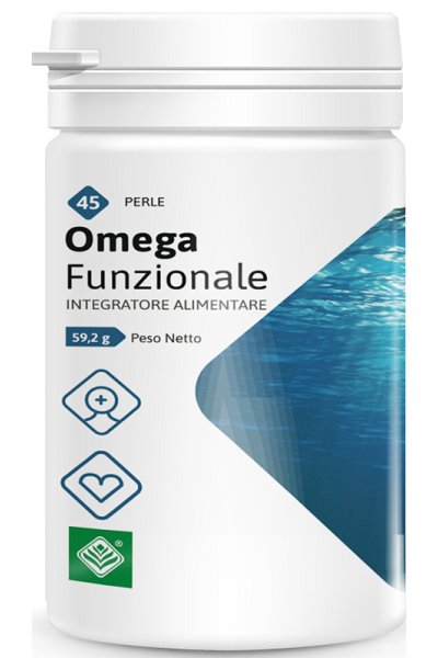 Omega funzionale è un integratore alimentare di olio di pesce titolato in acido eicosapentaenoico (EPA) e acido docosaesaenoico (DHA). EPA e DHA assunti alla dose giornaliera di 250 mg contribuiscono alla normale funzione cardiaca (1 perla al giorno); Gli omega-3 assunti alla dose di 2 g (pari a 3 perle al giorno) favoriscono il mantenimento di normali livelli dei trigliceridi nel sangue; Gli omega-3 assunti alla dose di 3 g (pari a 5 perle al giorno) favoriscono il mantenimento di livelli normali della pressione sanguigna. Il DHA assunto alla dose giornaliera di 250 mg (pari ad una perla al giorno) favorisce una normale capacità visiva e una normale funzione cerebrale.