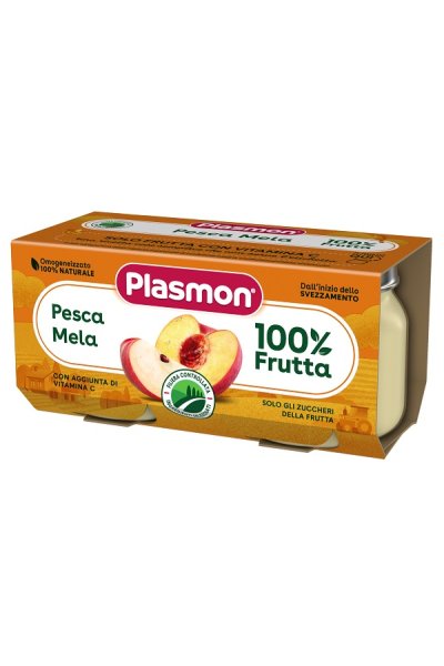 Omogeneizzato a base di pesca e mela. Prodotto indicato a partire dal 6° mese compiuto, salvo diverso parere del pediatra.