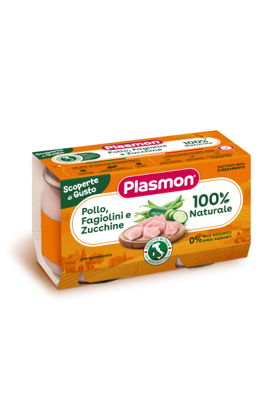 Omogeneizzato di pollo, fagiolini e zucchine 100% naturale.