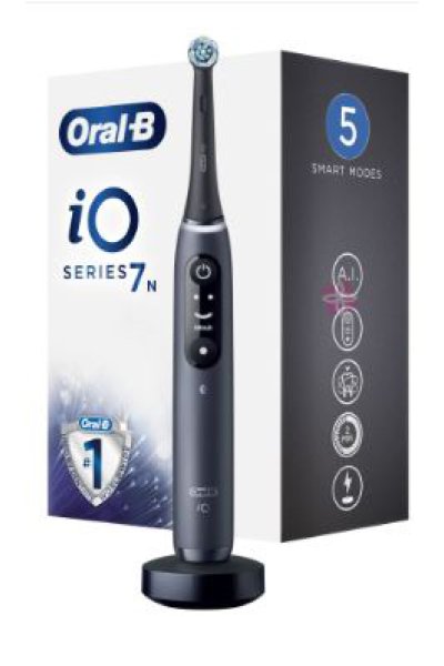 Spazzolino elettrico con timer professionale, controllo della pressione di spazzolamento, connettività Bluetooth e 5 modalità di spazzolamento smart; è dotato di tecnologia, con intelligenza Artificiale, display interrativo B/N e rilevamento della posizione.