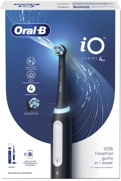 Lo spazzolino elettrico iO 4 presenta la migliore tecnologia Oral-B, combinando l'esclusiva testina rotonda ispirata a quella degli strumenti del dentista con setole oscillanti per una sensazione di pulizia professionale e purificante a casa.