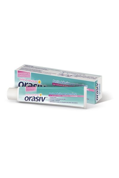 La pasta adesiva contiene estratti di origine naturale. La pasta limita le infiltrazioni di cibo e aumenta la stabilità della protesi alle gengive e al palato, diminuendo il rischio di irritazioni da stress meccanico.