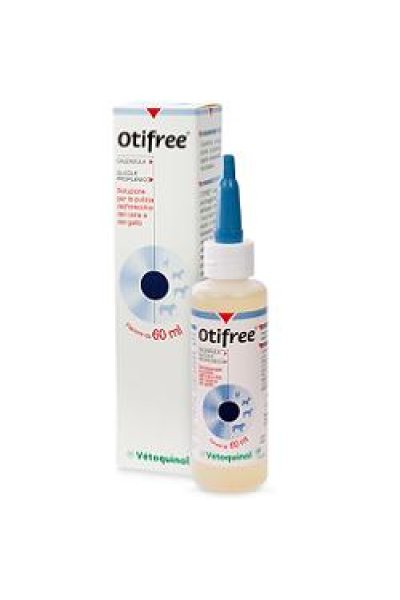 Soluzione per il lavaggio e la pulizia dell'orecchio, permette l'asportazione del cerume in eccesso e l'eliminazione dei residui cellulari dal condotto uditivo esterno. Per la sua composizione a base di calendula, Otifree esercita un'azione lenitiva e assicura idratazione e elasticità all'epidermide. Indicato nella normale pratica di pulizia dell'orecchio esterno (condotto uditivo) nel cane e nel gatto.Uso topico.