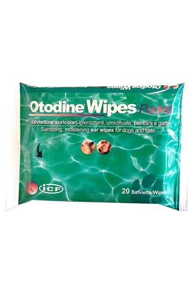 Salviettine auricolari igienizzanti, umidificate, per cani e gatti.