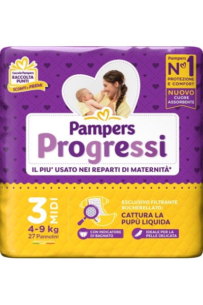 Pampers Progressi Midi, 27 Pannolini, Taglia 3 (4-9 kg).