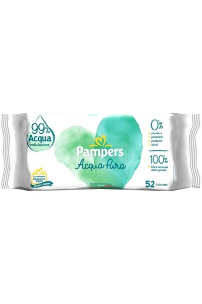 La nuova linea di salviettine Pampers che aggiunge la delicatezza del cotone 100% Biologico e la purezza della lozione con il 99% di acqua per una pulizia delicata della pelle del bambino. 0% parabeni, profumi e alcol.