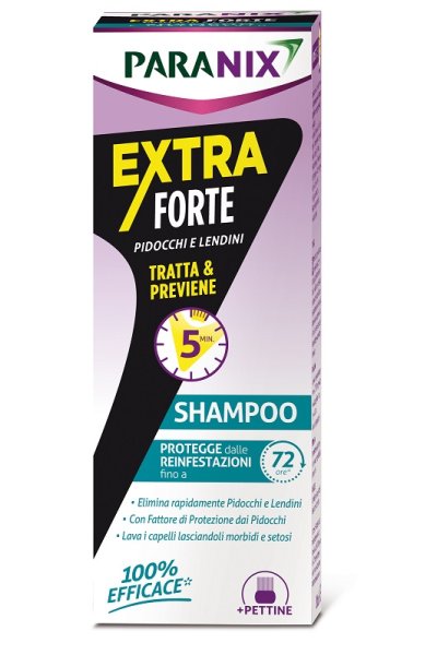 La formula a tripla azione dello shampoo Paranix Extra Forte non solo soffoca ma anche disidrata pidocchi e lendini. Inoltre, è comodo da usare in quanto lava i capelli allo stesso tempo. La sua tecnologia LPF aiuta ad evitare le reinfestazioni fino a 72 ore*. Grazie alla sua azione meccanica non vi è alcun rischio di sviluppare resistenza a Paranix Extra Forte Shampoo.