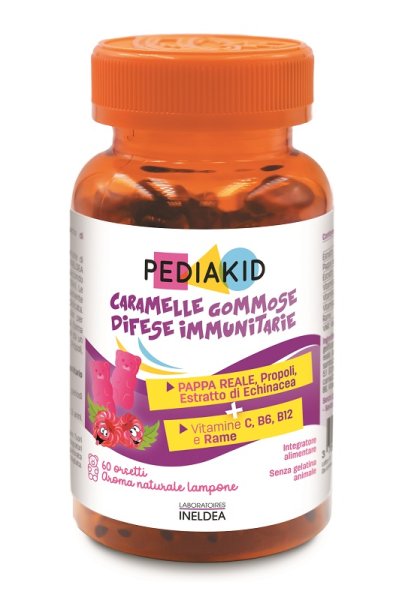 Sciroppo di glucosio, zucchero di canna, vitamina C; gelificante: pectina; acidificanti: citrato di potassio, acido citrico; pappa reale, aroma naturale di lampone con altri aromi naturali, succo di sambuco concentrato, estratto di propoli, estratto secco di echinacea 5:1 (Echinacea angustifolia DC., radici); agenti di rivestimento: cera carnauba, olio di cocco, olio di colza; bisglicinato di rame, vitamina B6, vitamina B12.