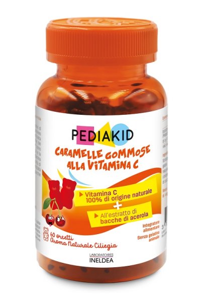 Sciroppo di glucosio, zucchero di canna, estratto di acerola (Malpighia glabra L., frutto) titolato in vitamina C; gelificante: pectina; aroma naturale di ciliegia; acidificanti: citrato di potassio, acido citrico; concentrato di carota nera; agenti di rivestimento: cera carnauba, olio di cocco, olio di colza.