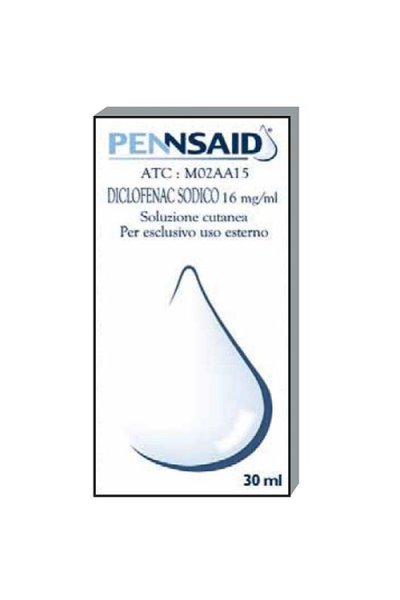 Indicazioni terapeutichePENNSAID (16 mg/ml di diclofenac sodico) è una soluzione cutanea indicata nel sollievo sintomatico del dolore associato all’osteoartrite delle articolazioni superficiali, compreso il ginocchio. Non sono disponibili dati sull’uso di PENNSAID nelle articolazioni grandi e profonde, rivestite da strati muscolari o di altri tessuti molli, come l’anca o la colonna vertebrale.