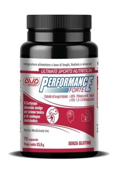 Grazie alle preziose proprietà del Cordyceps sinensis di Aloha Medicinals, Performance forte svolge un'azione tonica e di sostegno metabolico, contribuendo a regolarizzare la produzione ormonale ed è particolarmente indicato come integrazione dell’alimentazione dello sportivo, in quanto favorisce la fisiologica resistenza fisica e mentale e aiuta a ridurre la sensazione di fatica, migliorando la produzione e l’utilizzo di energia.