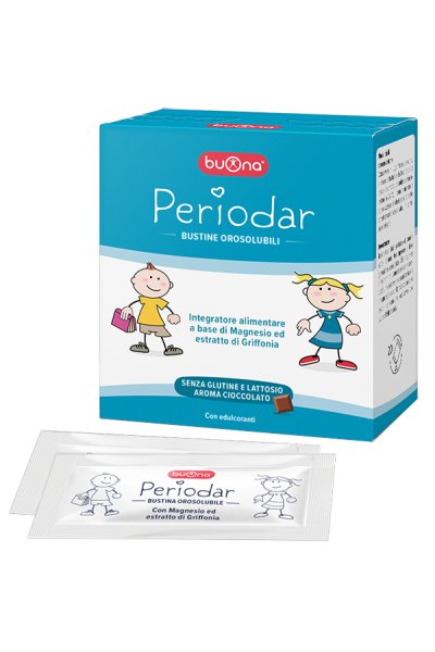 Periodar è in bustine orosolubili al gusto di cioccolato.