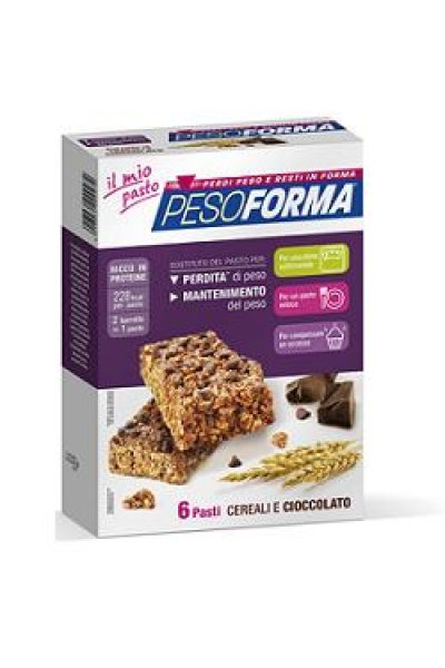 Barrette ai cereali e gocce di cioccolato, per un pasto completo con 232 kcal. Sostituto del pasto per il controllo e il mantenimento del peso.2 barrette corrispondono a un pasto.