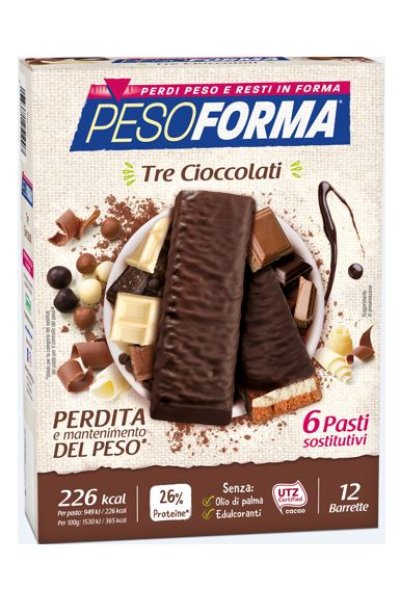Pasto sostitutivo per la perdita e controllo del peso. Completo ed equilibrato, contiene 13 vitamine e 11 minerali, ricco di proteine e di fibre, senza olio di palma ed edulcoranti. Gusto: tre cioccolati.