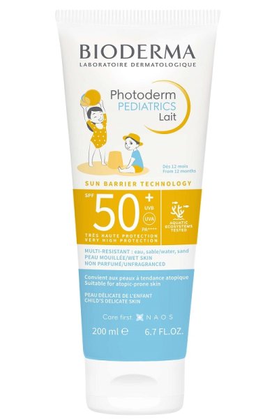 DescrizioneLatte viso e corpo. Altissima protezione della pelle delicata del bambino. A partire da 12 mesi. Adatto alla pelle atopica. Resistente all’acqua e alla sabbia. Ripetere l’applicazione dopo aver fatto il bagno o se la pelle viene strofinata.