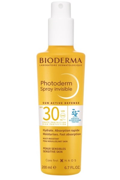 Spray invisibile. Alta protezione per pelle sensibile. Idrata. Assorbimento rapido. Applicare frequentemente. Viso e corpo.