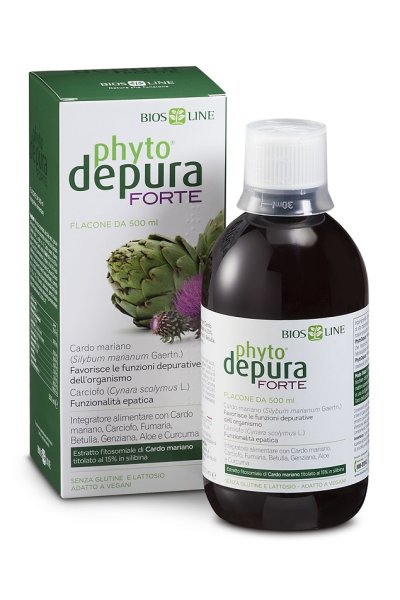Integratore alimentare con cardo mariano fitosomiale titolato al 15% in silibina, carciofo, fumaria, betulla, genziana, aloe e curcuma.