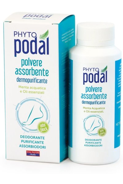 POLVEREconcentrato di principi vegetali ed oli essenziali purissimi specifici per l'igiene del piede. L?associazione tra le microcapsule assorbenti ed il complesso deodorante mantiene il piede fresco, asciutto e deodorato per tutto il giorno. Il suo utilizzo quotidiano contrasta la formazione dei cattivi odori ed inibisce l?eccessiva sudorazione regolando la fisiologica traspirazione cutanea. Phytopodal polvere mantiene la cute dei piedi delicatamente profumata con un'azione efficace per molte ore. È indicata anche per le pelli più sensibili e facilmente irritabili.