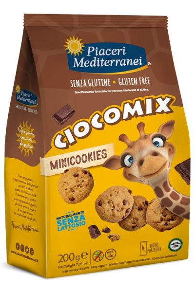 Gocce di cioccolato fondente 19% (zucchero, pasta di cacao, burro di cacao; emulsionante: lecitina di soia; aroma naturale di vaniglia), farina di avena integrale, farina di riso, zucchero di canna, uova, olio di semi di girasole, sciroppo di glucosio (mais), sale; agenti lievitanti: carbonati di sodio, carbonati di ammonio; addensante: gomma di xantano.