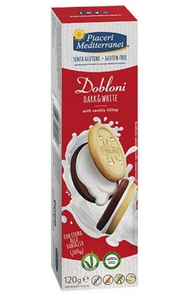 Un biscotto bianco e uno nero racchiudono una crema alla vaniglia.