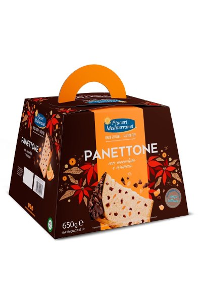 Burro delattosato 16%, cioccolato fondente di copertura aromatizzato 12% (zucchero, pasta di cacao, burro di cacao; emulsionante: lecitina di soia, aroma naturale di vaniglia, aroma fiori d'arancio), uova, zucchero, scorza d'arancia candita 10% (scorzone d'arancio 52%, sciroppo di glucosio-fruttosio, zucchero; acidificante: acido citrico), gocce di ciccolato fondente 10% (zucchero, pasta di cacao, burro di cacao; emulsionante: lecitina di soia), fecola di patate, amido di mais, farina di riso, lievito madre (farina di riso, amido di mais, acqua, fermenti lattici), emulsionanti: mono e digliceridi degli acidi grassi, lievito di birra, scagliette fondenti 3% (zucchero, pasta di cacao, burro di cacao; emulsionante: lecitina di soia; aroma naturale di vaniglia), latte delattosato in polvere 2,6%; umidificanti: sorbitolo, glicerolo; addensanti: gomma di xanthanm gomma di guar; sale, aromi.