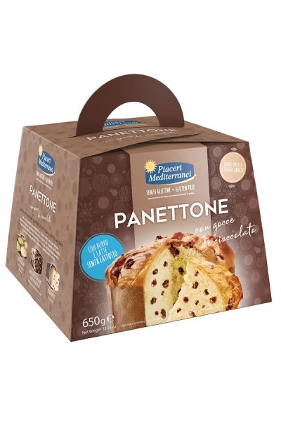 Burro delattosato 16%, farina di riso, latte delattosato reidratato 12,5%, tuorlo d’uovo, zucchero, lievito naturale [acqua, amido di mais, farina di riso, sale, fermenti lattici (lactobacillus)], amido di mais; gocce di cioccolato 6%: (zucchero, pasta di cacao, burro di cacao, emulsionante: lecitina di soia, aroma vaniglia), lievito di birra; umidificanti: sorbitolo; addensanti: gomma di xanthan, gomma di guar; emulsionanti: mono e digliceridi degli acidi grassi; aroma, burro di cacao, sale.