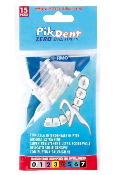 - Muovere avanti e indietro PikDent zero per rimuovere placca e residui di cibo dagli spazi interdentali.