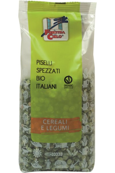 Piselli spezzati biologici abbinati a cerali per un pasto completo e ricco di nutrienti. Prodotto adatto ai vegani.