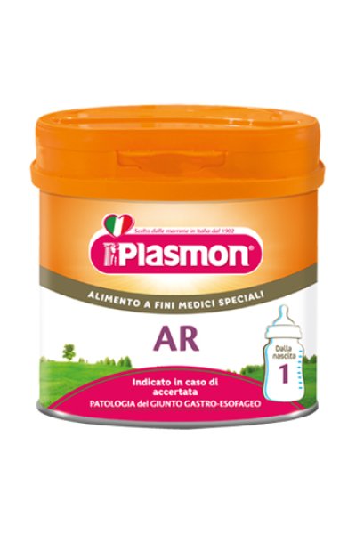 Alimento destinato a fini medici speciali, indicato in caso di accertata patologia del giunto gastro-esofageo. Plasmon AR 1 è un alimento in polvere formulato per rispondere pienamente ai bisogni nutrizionali dei lattanti sin dalla nascita. È adatto, come unica fonte di nutrimento, alla particolare alimentazione del lattante dalla nascita fino al 6° mese di vita. Contiene nella sua formulazione farina di semi di carrube, un addensante naturale che ne aumenta la viscosità e lo rende indicato in caso di patologia accertata del giunto gastro-esofageo.