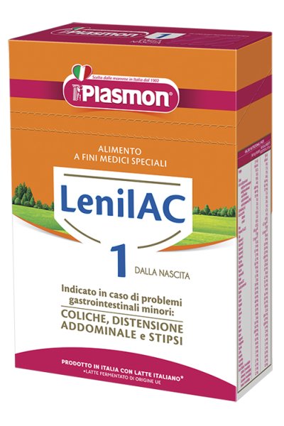 Plasmon LenilAC 1 è un alimento a fini medici speciali in polvere, indicato dalla nascita in caso di problemi gastrointestinali minori: coliche, distensione addominale e stipsi, da utilizzare sotto il Controllo del medico.