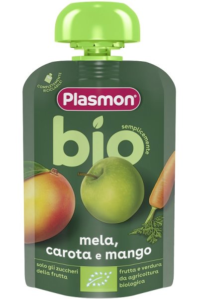 DescrizioneAlimento per l'infanzia biologico: omogeneizzato mela, carota e mango. Prodotto indicato a partire dal 6° mese compiuto, salvo diverso parere del pediatra.