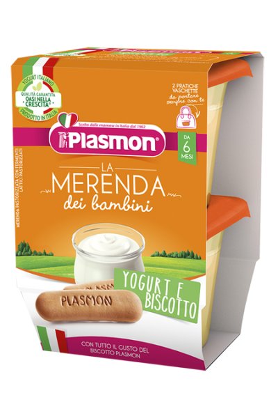 La Merenda dei bambini Yogurt e Biscotto unisce tutto il gusto del biscotto Plasmon alla bontà dello yogurt.