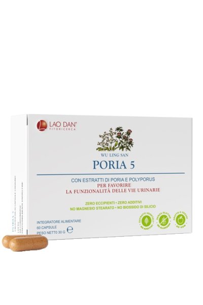 Integratore alimentare composto da estratto totale di sostanze vegetali, utile per per favorire la funzionalità delle vie urinarie. La Poria ed il Polyporus promuovono la funzionalità delle vie urinarie, il ricambio idrico e la diuresi.