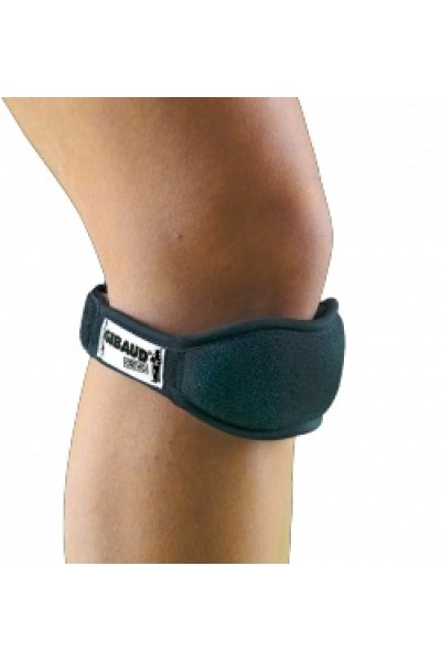 Posizionare il pressore in corrispondenza del tendine rotuleo (appena sotto il ginocchio), inserire la cinghia nella fibbia e fissare con la chiusura a strappo.