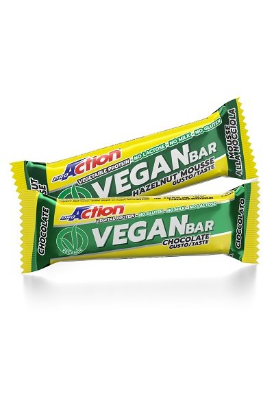 Barretta energetica vegana al gusto di cioccolato e mousse alla nocciola.