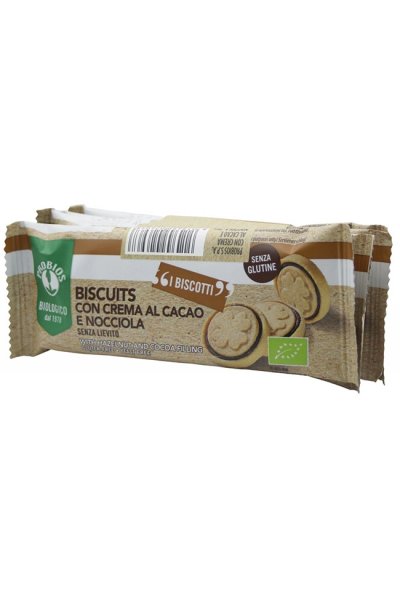 Biscotti biologici e senza lievito, con crema al cacao e nocciola , senza glutine, farciti con una morbida crema al cacao e nocciola.