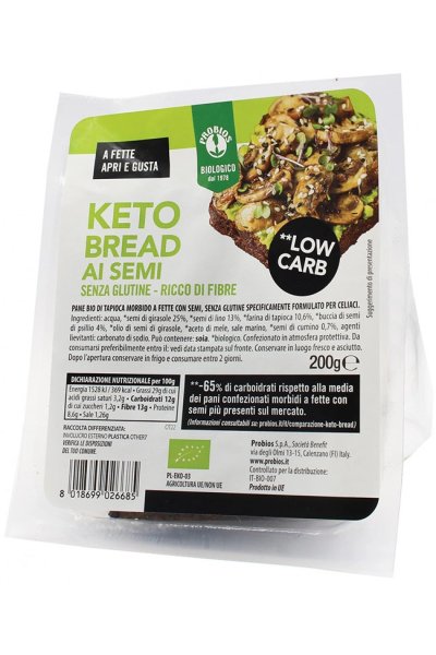 Pane biologico dedicato ad un'alimentazione chetogenica. Arricchito con semi quali lino e girasole per un gusto unico. Con il 65% di carboidrati in meno, è un pane ricco di fibre. Il pane è pretagliato in fette per un'esperienza apri e gusta.