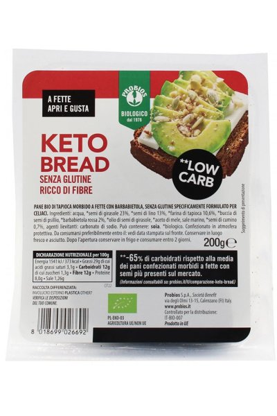 Pane biologico dedicato a chi segue una dieta chetogenica. Con il 65% di carboidrati in meno è ricco di fibre e garantito senza glutine. Il pane è pretagliato in fette per un'esperienza apri e gusta.
