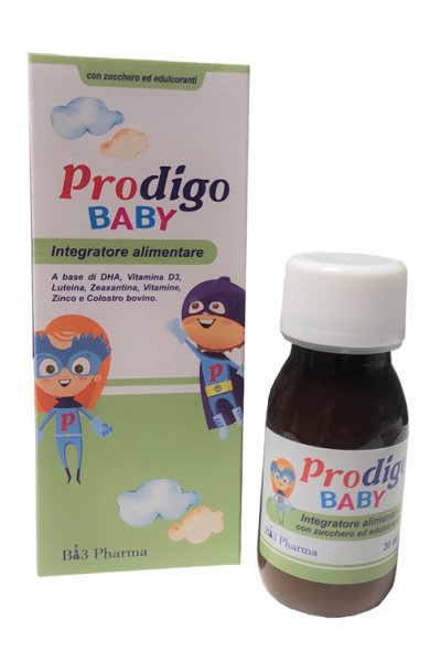 Integratore alimentare a base di DHA, vitamina D3, luteina, zeaxantina, vitamine, zinco e colostro bovino.