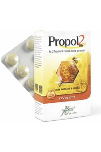 | Quantitativi per dose giornaliera minima consigliata - 3 tavolette | Propoli estratto liofilizzato multifrazione (Propol2 EMF): Flavonoidi totali* di cui Pinocembrina+Galangina** CAPE (estere feniletilico dell’acido caffeico)** | 34 mg 14,5 mg 4 mg 0,84 mg |