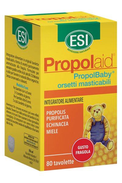 Latte scremato in polvere (340 mg), edulcorante: sorbitolo, lattosio, miele in polvere (20 mg), aromi, antiagglomeranti: magnesio stearato vegetale, biossido di silicio; propolis resina estratto secco titolato al 12% in flavonoidi totali come galangina (7,5 mg), echinacea (Echinacea Purpurea Moench.) erba estratto secco titolato al 4% in polifenoli (2,5 mg).